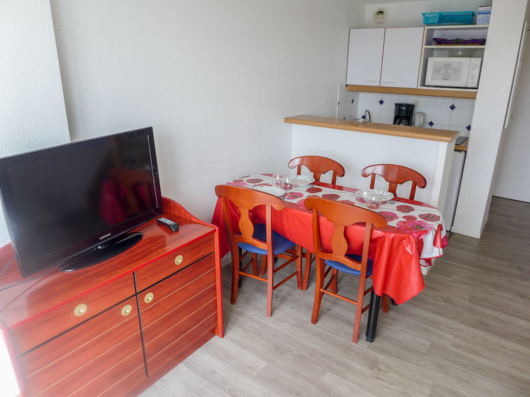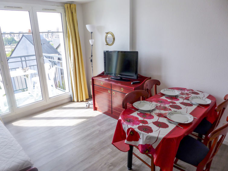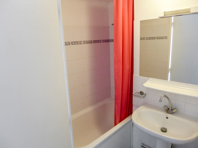 Appartement 3-kamers 42 m2 op 2 verdiepingen op de 2e verdieping, op het noordwesten gelegen. Woon-/eetkamer met 1 uitschuifbaar bed (2 pers. 2 x 90 cm, lengte 190 cm), TV (Flatscreen TV). Uitgang naar het balkon. Kookhoek (2-pits kookplaat, afwasmachine, broodrooster, magnetron, elektrische koffiemachine) met bar. Aparte WC. Elektrische verwarming. Bovenverdieping: 1 kamer met 1 2-pers bed (1 x 140 cm, lengte 190 cm). 1 kamer met 2 bedden (90 cm, lengte 190 cm). Uitgang naar het balkon. Badkamer, aparte WC. Balkon 3 m2, terras 10 m2. Terrasmeubelen. Uitzicht in de verte op zee en de rivier. Ter beschikking: strijkijzer. Internet (Internet (WiFi), extra). Parkeerplaats nr. 02 (overdekt). Maximaal 1 huisdier/hond toegestaan. Rookmelders.