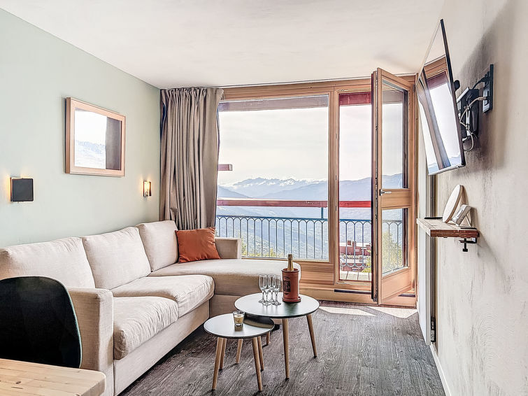 Appartement 2-kamers 38 m2 op de 3e verdieping. Gerenoveerd, comfortabel en smaakvol ingericht: woon-/eetkamer met TV (Flatscreen TV). Uitgang naar het balkon, op het zuidwesten. Doorloopkamer met 1 x 2 stapelbedden (80 cm, lengte 190 cm). 1 kamer met 1 2-pers bed (160 cm, lengte 200 cm). Open keuken (oven, afwasmachine, 4 inductiekookplaten, broodrooster, waterkoker, magnetron, elektrische koffiemachine, pads voor de koffiemachine (Nespresso) extra) met eettafel. Badkamer, aparte WC. Zeer mooi panoramazicht op de bergen en de skipiste. Ter beschikking: wasmachine, strijkijzer, haardroger. Internet (WiFi, gratis). Hoogte 180 cm. Niet rokers woning. Rookmelders. Aanbod door een particulier volgens art. 155, IV van CGI.
