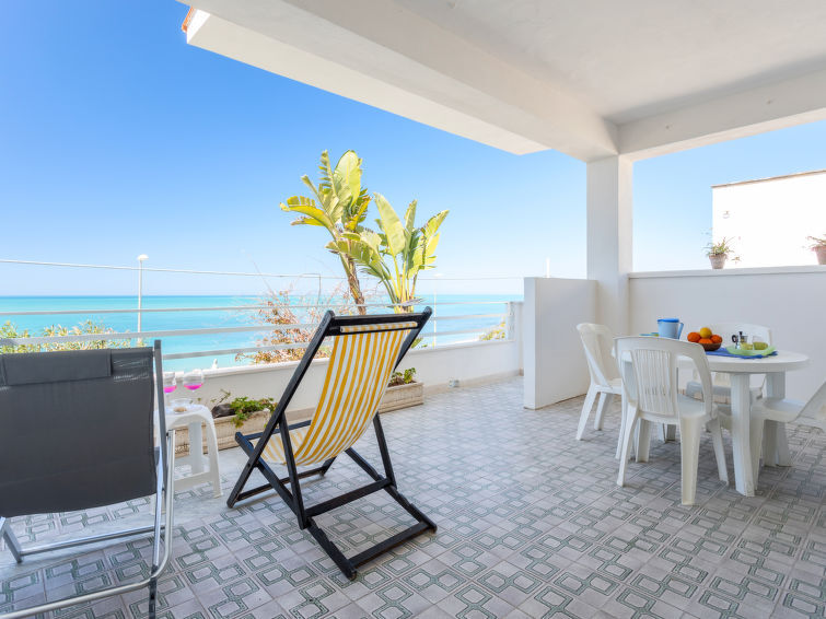 Huis met 3 woningen "Seccagrande". In het gehucht Seccagrande, 10 km van het centrum van Ribera, zonnige ligging, 10 m van zee, de straat oversteken, op het zuiden. Openbare parkeerplaatsen in de straat. Levensmiddelenwinkel 500 m, restaurant 1 km, bushalte 9 km, kiezelstrand, stenenstrand 20 m, rotsstrand 2 km. Attracties in de buurt: Eraclea Minoa 12 km, Scala dei Turchi 30 km, Valle dei Templi Agrigento 42 km, Palermo 118 km, Trapani Traghetti per Isole Egadi 130 km. Auto noodzakelijk, geen lift. Ingang langs een buitentrap voor medegebruik met 2 appartementen (10 traptreden). Het huis bestaat uit 4 appartementen. Andere restaurants (open van mei tot september) in een omtrek van 0,5 - 1 km. Tempelvallei op 40 km, thermen van Sciacca op 20 km.