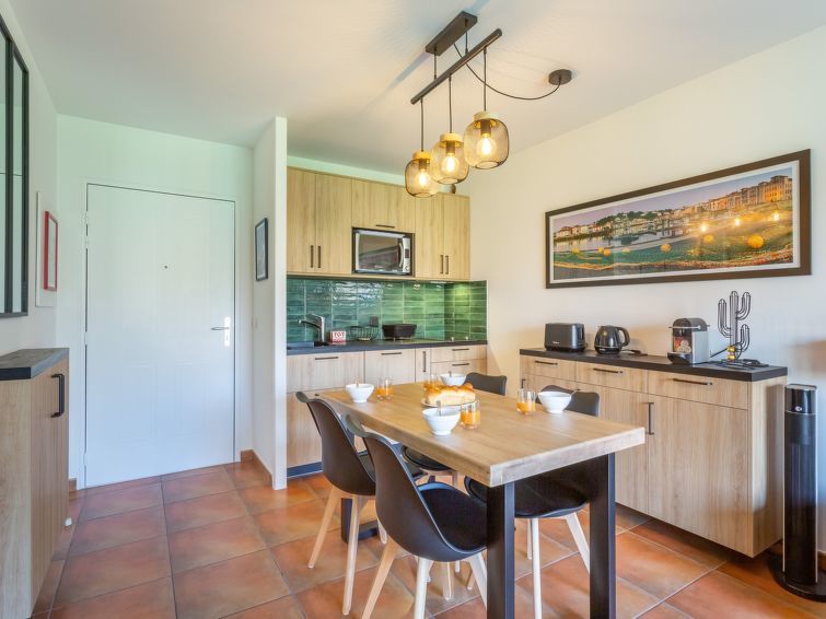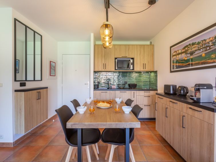 "Résidence Odalys", appartement 3-kamers 52 m2, op de begane grond. Comfortabel en mooi ingericht: woon-/eetkamer met panoramavenster met TV (Flatscreen TV), elektrische verwarming. Uitgang naar het terras. 1 kamer met 1 2-pers bed (1 x 140 cm, lengte 190 cm). 1 kamer met 1 x 2 stapelbedden (90 cm, lengte 190 cm). Open keuken (oven, afwasmachine, 2 inductiekookplaten, broodrooster, waterkoker, magnetron, elektrische koffiemachine, pads voor de koffiemachine (Nespresso)). Badkamer, aparte WC. Elektrische verwarming. Groot terras 17 m2. Terrasmeubelen. Uitzicht op. Ter beschikking: strijkijzer, kinderbed, haardroger. Internet (Internet (WiFi), gratis). Parkeerplaats nr. 363 (overdekt). Rookmelders. 6448300187058