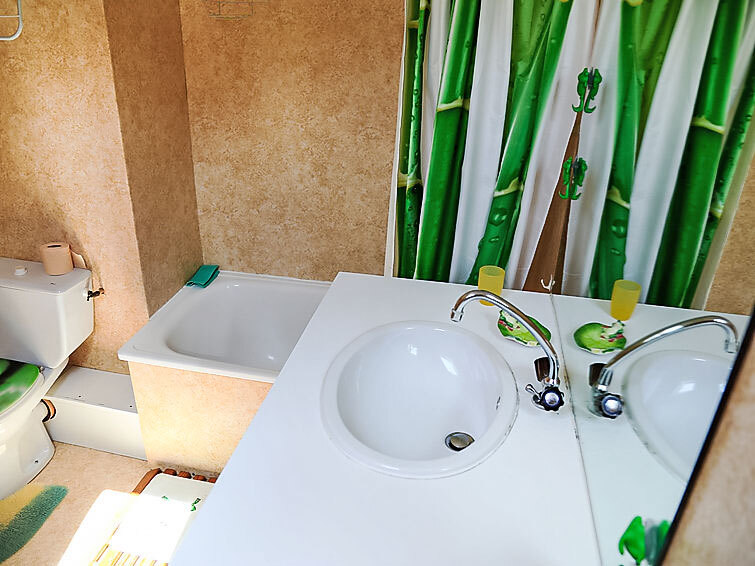 Appartement 2-kamers 38 m2 op de 1e verdieping. Doelmatig ingericht: woon-/eetkamer, met afgeschuinde daken met TV. 1 kamer met afgeschuinde daken met 1 2-pers bed (140 cm, lengte 190 cm). Slaapnis met 1 x 2 stapelbedden (90 cm, lengte 190 cm). Kookhoek in de hal (2-pits kookplaat, mini-oven, magnetron). Bad/WC. Elektrische verwarming. Ter beschikking: wasmachine. Rookmelders. Rookmelders. In plaats van een afgesloten slaapkamer bevinden sommige slaapgedeeltes zich in een open ruimte (galerij, nis, etc.).
