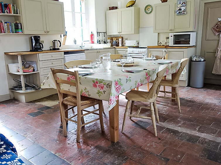Huis 7-kamers 318 m2 op 2 verdiepingen. Het objekt is geschikt voor 10 volwassenen + 2 kinderen. Comfortabel en mooi ingericht: woon-/eetkamer met open haard en TV (Flatscreen TV), CD-speler en DVD. Uitgang naar de tuin. Groot, open bureau 30 m2. 1 kleine kamer met 1 bed (80 cm), 1 2-pers bed (140 cm). Groot keuken (4-pits kookplaat, oven, afwasmachine, magnetron, elektrische koffiemachine) met eettafel. Douche/WC. Olie-verwarming. Bovenverdieping: 1 groot kamer met 1 2-pers bed (180 cm, lengte 208 cm). 1 groot kamer met 1 bed (90 cm), 1 2-pers bed (2 x 90 cm, lengte 200 cm). 1 kinderkamer met 2 bedden (80 cm, lengte 190 cm). 1 kamer met 1 2-pers bed (180 cm). Bad/WC, dubbele wastafels. Olie-verwarming (extra). Parketvloeren. Comfortabele inrichting in landelijke stijl. Tuin, gazon. Terrasmeubelen, barbecue, ligstoelen (6). Uitzicht op de tuin. Ter beschikking: wasmachine, kinderstoel, kinderbed tot 2 jaar. Internet (Internet (WiFi), gratis). Parkeerplaats (omheind, 4 Auto's). Geschikt voor families appartement aan de binnenplaats. TV alleen FR. Tv met franstalige zenders. Beddengoed en toiletten moeten vooraf gereserveerd worden bij de sleutelhouder. speelkamer met biljart, darts, tafeltennis, tafelvoetbal en kicker.