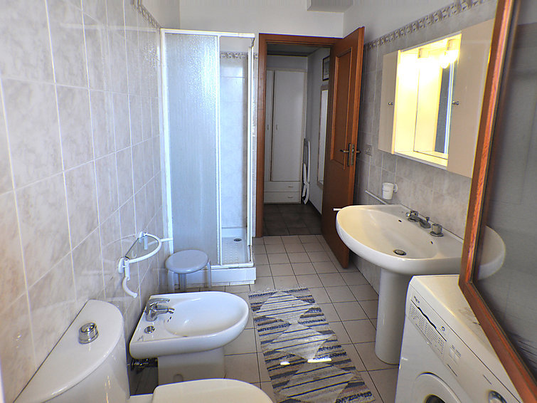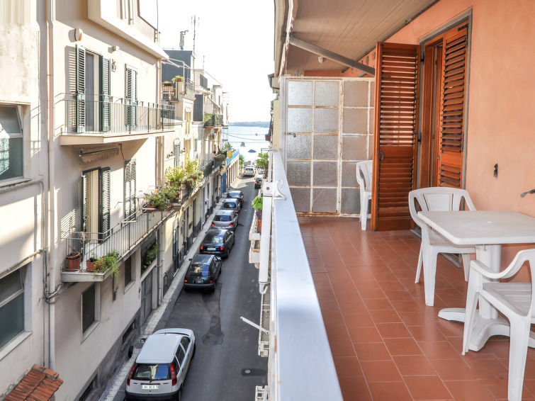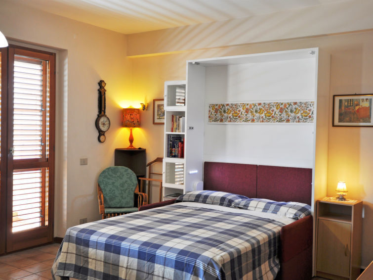 Appartement 1-kamer 40 m2 op de 2e verdieping. Eenvoudig en doelmatig ingericht: woon-/slaapkamer met 1 2-pers bed (140 cm), Sat-TV (Flatscreen TV), air-conditioning, ventilator en heteluchtverwarming. Uitgang naar het terras. Kookhoek (4-pits kookplaat, mini-oven, broodrooster, waterkoker, magnetron, diepvriezer) met eettafel. Douche/bidet/WC. Verwarming (extra), air-conditioning, heteluchtverwarming (extra), boiler (50 liter). Verwarming alleen beschikbaar van 01.12. tot 31.03. Terras 10 m2, overdekt. Balkonmeubilair. Beperkt uitzicht op zee. Ter beschikking: wasmachine, strijkijzer, haardroger. Internet (Internet (WiFi), gratis). Parkeerplaats (extra, overdekt). Rookmelders, brandblusser, geen lift. IT087002C2L99FRSI8