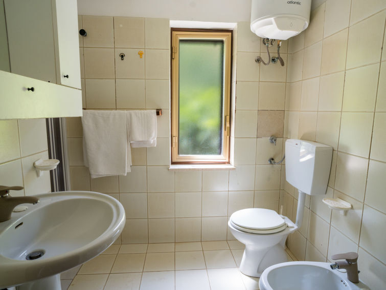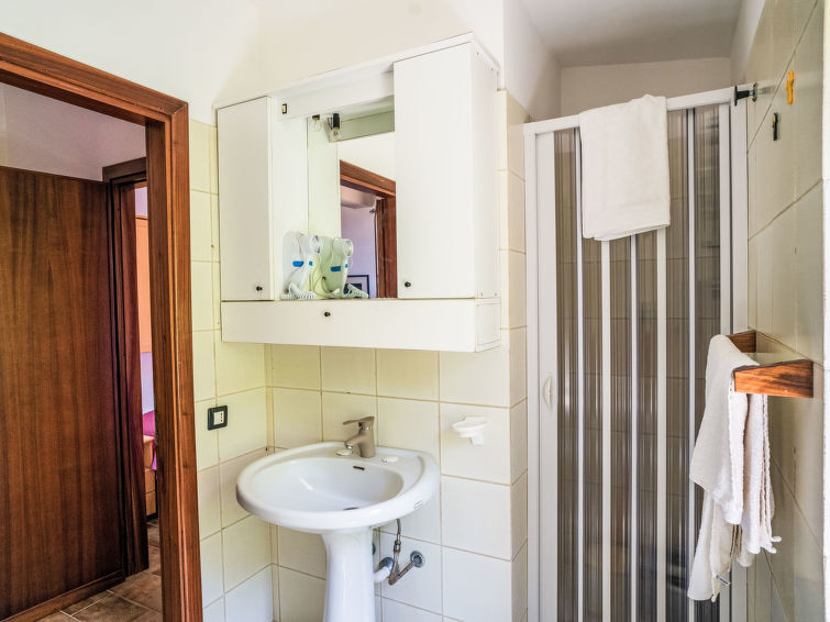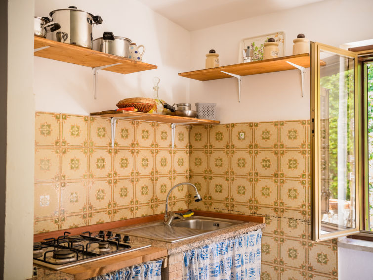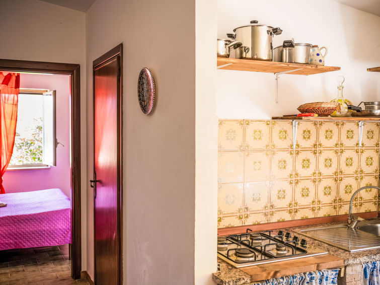 "Sole", appartement 2-kamers 40 m2 op de 1e verdieping. Eenvoudig en doelmatig ingericht: woon-/eetkamer met 2 divanbedden en Sat-TV (Flatscreen TV), ventilator. 1 2-pers. kamer met ventilator. Kookhoek (4 kookpitten (vlammen), broodrooster, waterkoker, magnetron, elektrische koffiemachine). Douche/bidet/WC. Geen verwarmingsmogelijkheid. Beperkt uitzicht op zee en de bergen. Ter beschikking: haardroger. Internet (Internet (WiFi), gratis). Parkeerplaats (1 Auto). Rookmelders, brandblusser. IT082074C24DRVPBHK